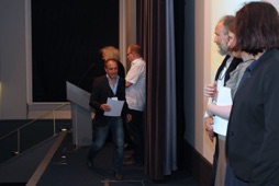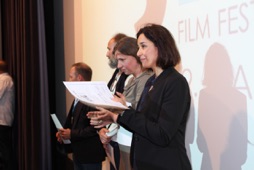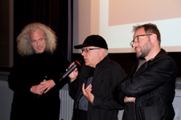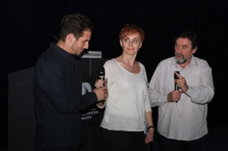 Ben Bonta, the movie ambassador for the Hungarian contribution, Ingrid Beerbaum, Moderator and Zoltán Siflis, Director from „In a Vortex“